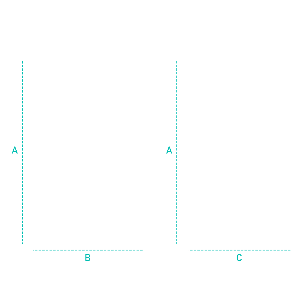 A | 000mm, B | 000mm, C | 000mm